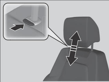 To raise the head restraint: Pull it upward. To lower the head restraint: Push it down while pressing the release button.