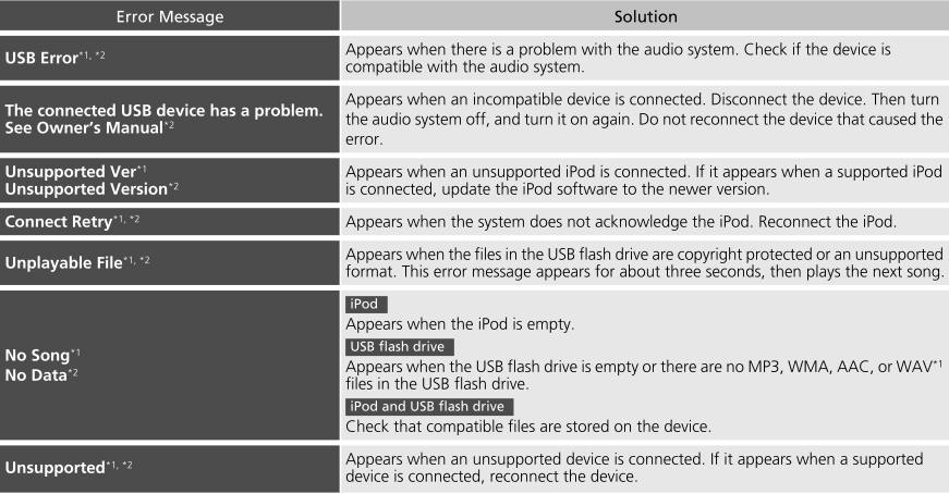 If an error occurs while playing an iPod or USB flash drive, you may see the following error messages. If you cannot clear the error message, contact a dealer.