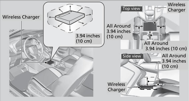 Keep a distance of at least 3.94 inches (10 cm) between all occupants and the wireless charger when charging.